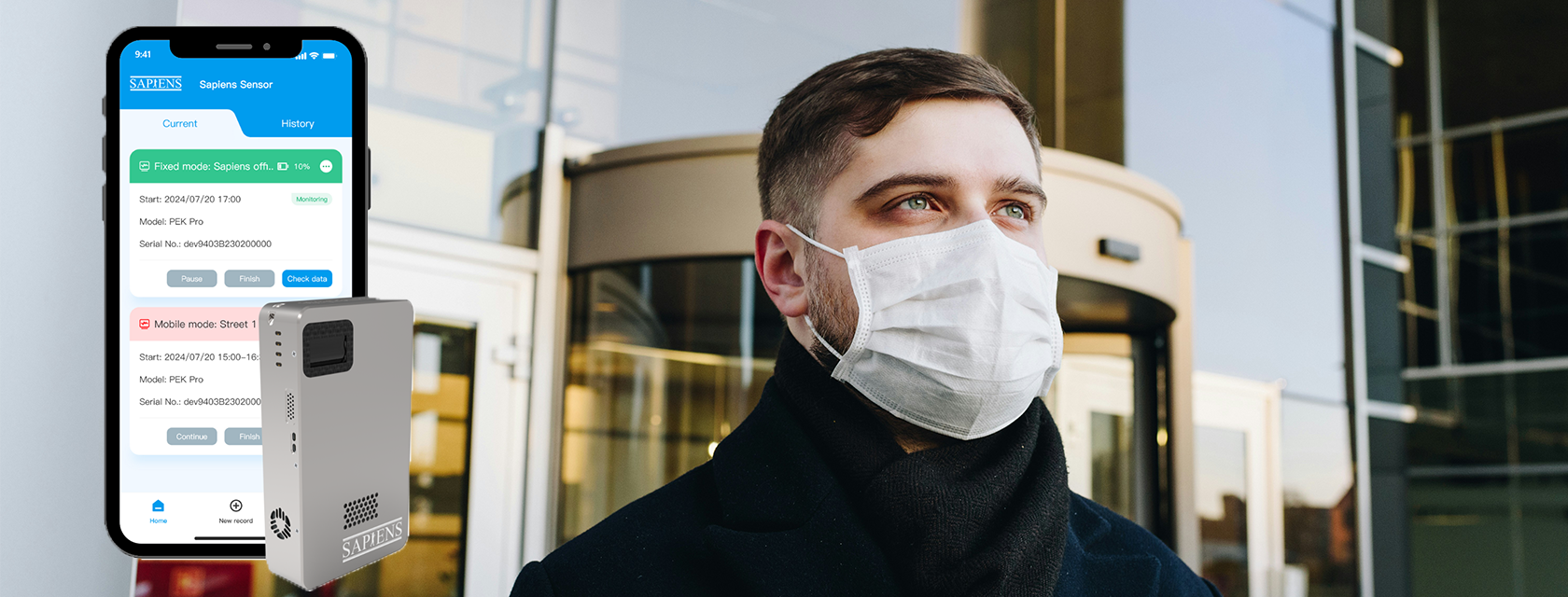 Sapiens Sensor App, a companion App for Personal Exposure Kit (PEK), allows user to easily visualize their microenvironment risk. Whether you are at home, work or on the go, gain real-time insights and historical data trends to ensure health safety and empower your decision-making.