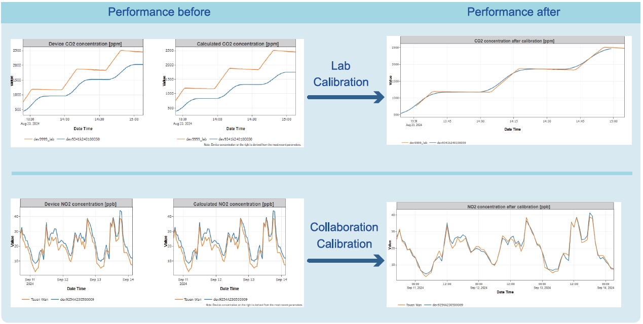 1) Factory calibration, Every Sapiens Sensor device is factory pre-calibrated before shipping. 2) Lab calibration, Devices can be sent to the Sapiens Sensor Care Service Centre for NIST-traceable factory calibration. 3) Field calibration, A Humidified Multi-Point (HMP) portable calibrator, along with calibration gas cylinders, can be used for field calibration. 4) Collocation calibration, Devices can be collocated at or near an Air Quality Monitoring Station (AQMS) to facilitate remote collocation calibration.